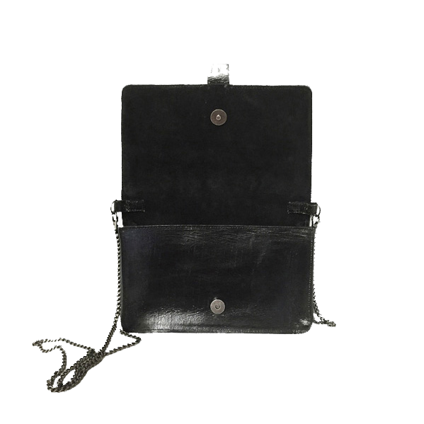 Signature Moodytwin Crossbody bag with gunmetal studs on the logo edges, with 120 inches adjustable gunmetal chain strap.