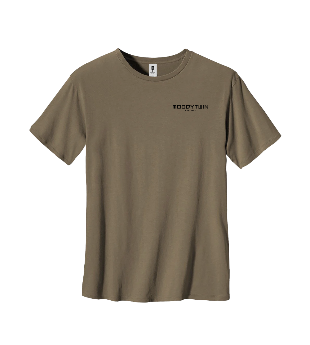 This Classic T-shirt features a boxier cut and very soft heavyweight material. Featuring an embroidered Moodytwin signature. This T-shirt is eco-conscious, it's knit from 100% cotton, and it's great for the environment.