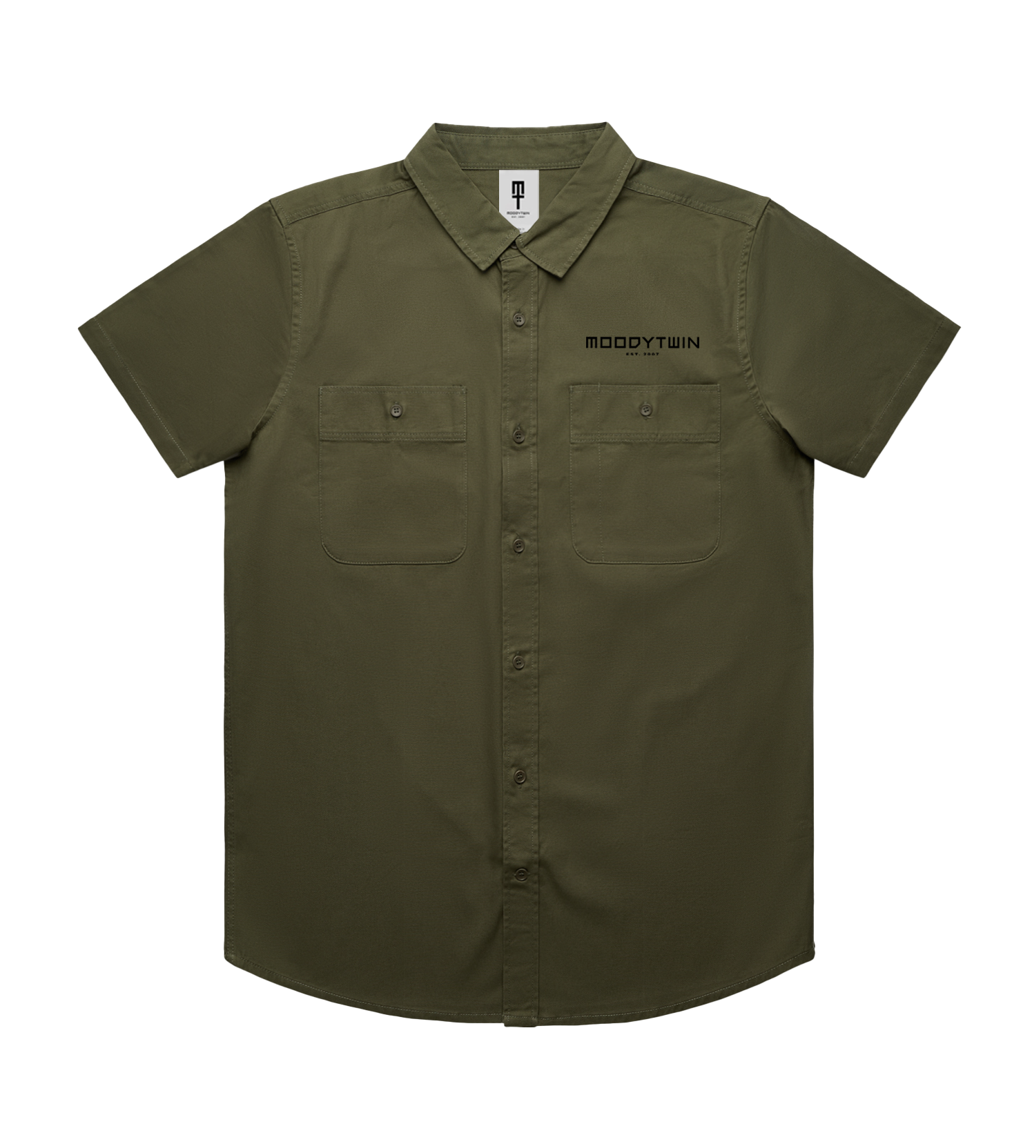 Rugged & durable, this workwear button-down shirt is an ideal everyday staple piece. Featuring an embroidered Moodytwin signature. Twin chest pockets.